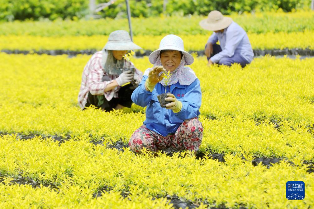 8月5日,在浙江省湖州市德清縣雷甸鎮雙溪村苗木種植基地,農民在管護苗木。
