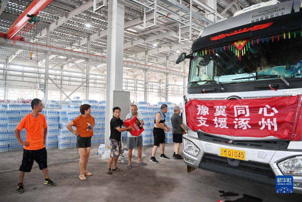 當日,大批來(lái)自全國各地的捐贈物資運抵河北涿州,支援當地受災群眾。