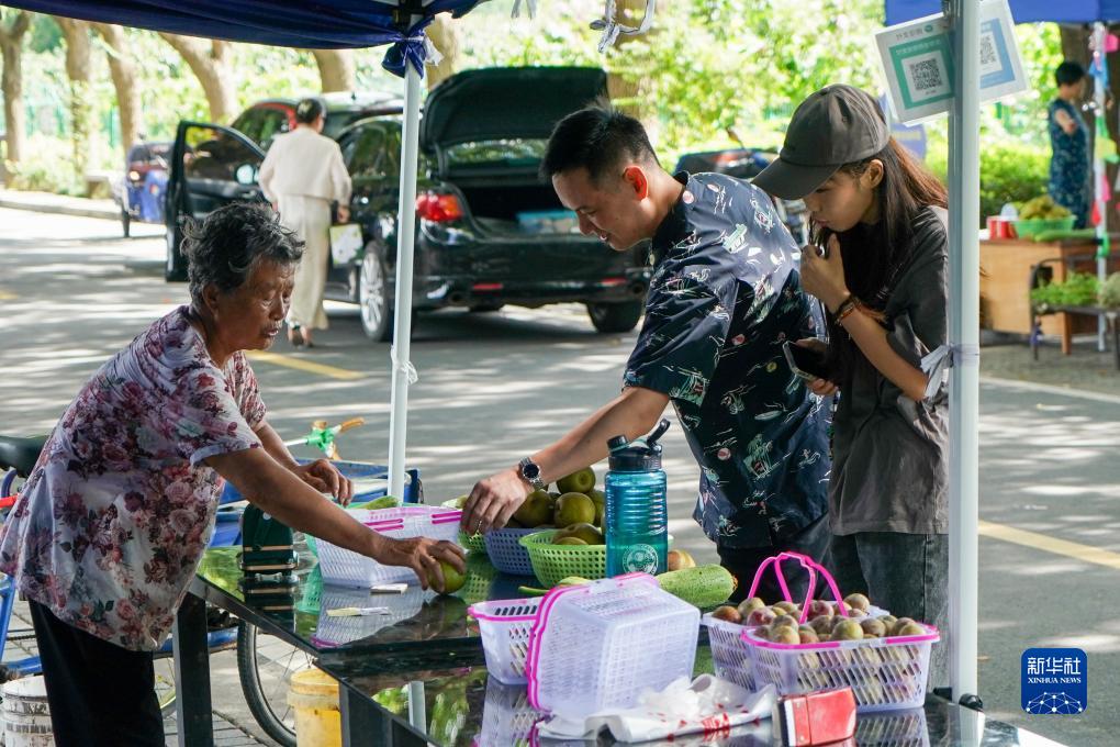 游客在蘇州市樹(shù)山村舉辦的“梨奇夏日”市集上選購翠冠梨(8月4日攝)。