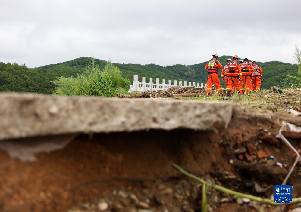 8月6日,吉林市消防救援支隊隊員徒步穿過(guò)坍塌的橋梁前往受困人員位置。