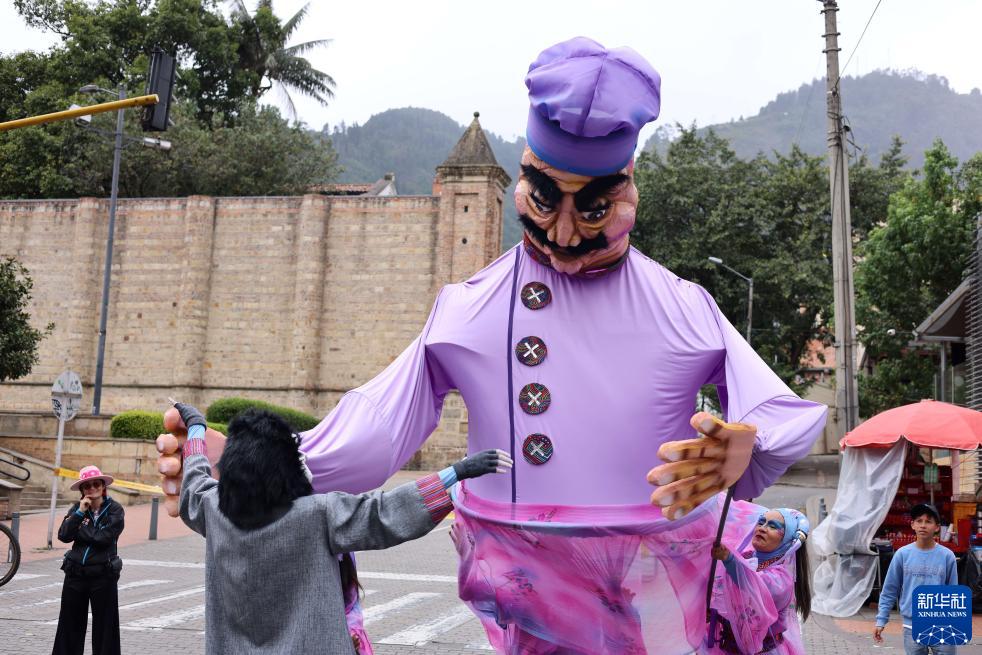 8月6日,在哥倫比亞波哥大,表演者操縱大型木偶。
