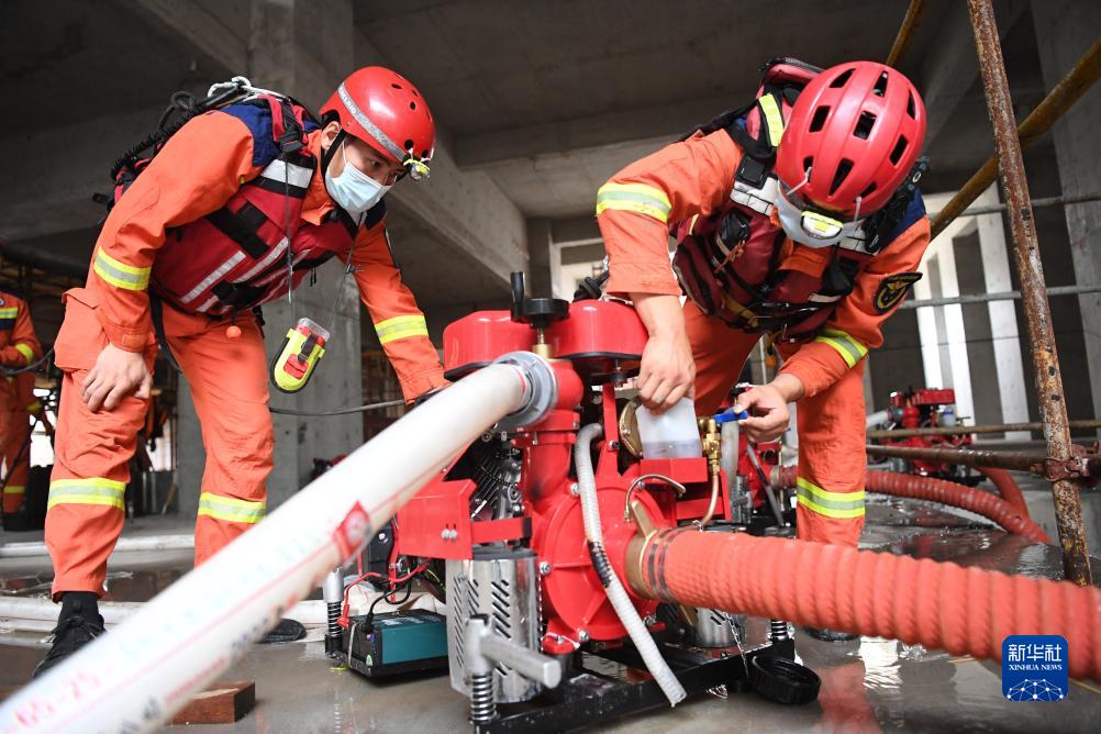 8月7日,邢臺市消防救援支隊隊員在河北省涿州市一處工地進(jìn)行排澇作業(yè)。