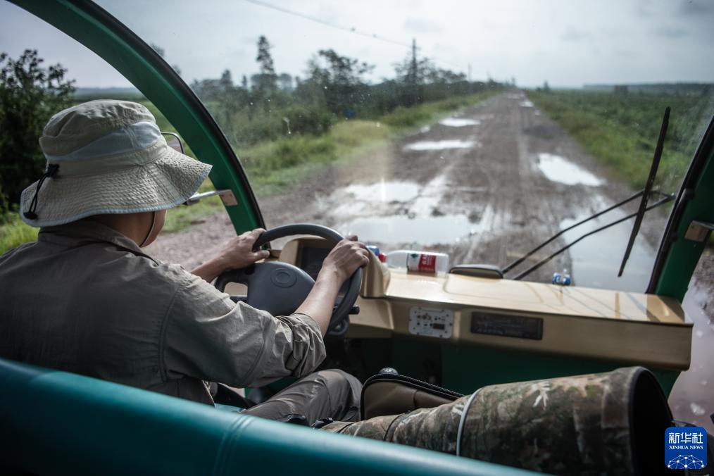8月2日,在湖北石首麋鹿國家級自然保護區,工程師張玉銘駕駛車(chē)輛前往麋鹿監測點(diǎn)。