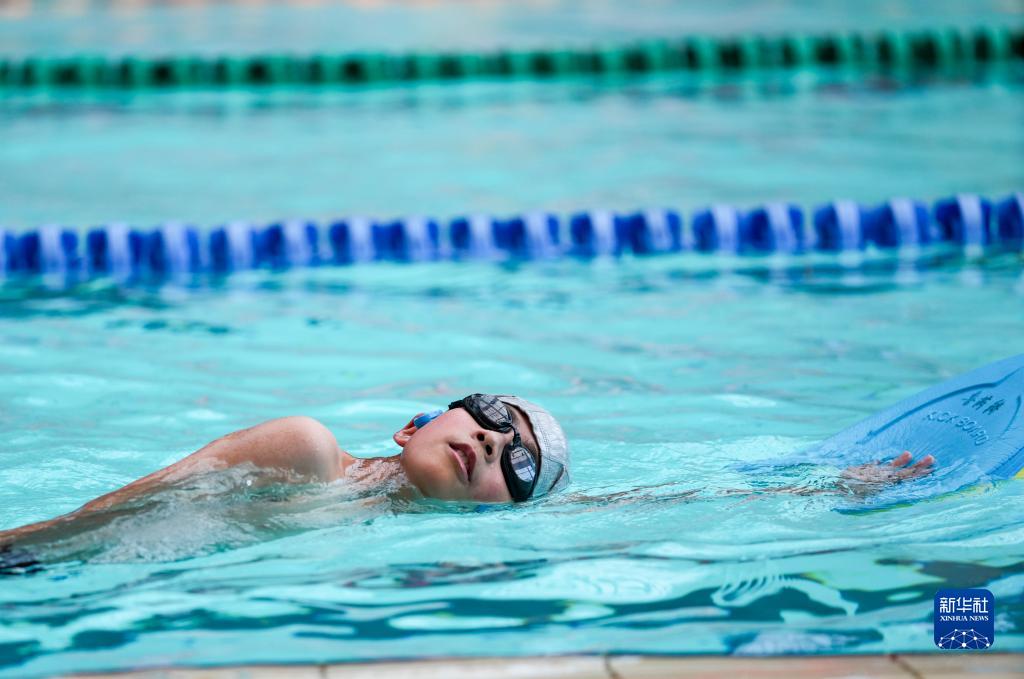 8月5日,重慶市特殊教育中心游泳隊隊員在重慶江南體育中心游泳館進(jìn)行水上練習。