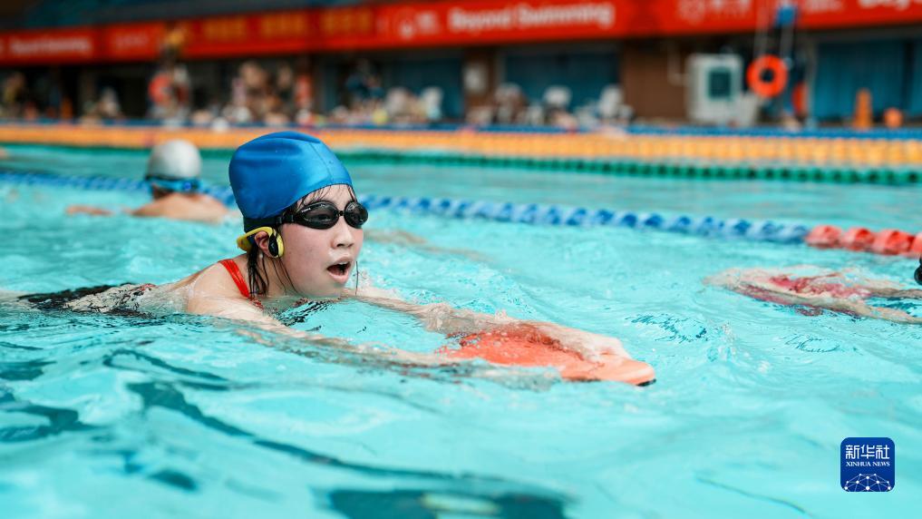 8月5日,重慶市特殊教育中心游泳隊隊員在重慶江南體育中心游泳館進(jìn)行水上練習。