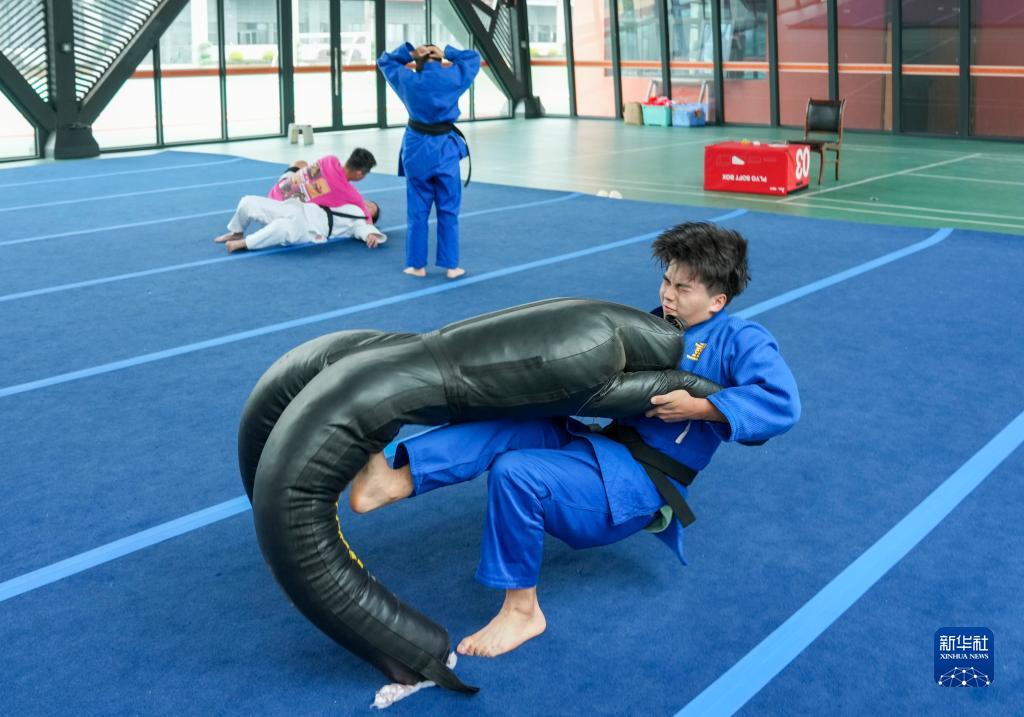 8月4日,重慶市特殊教育中心柔道隊隊員周涵在進(jìn)行訓練。
