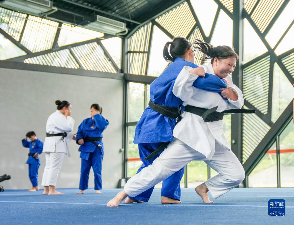 8月4日,重慶市特殊教育中心柔道隊隊員在進(jìn)行訓練。