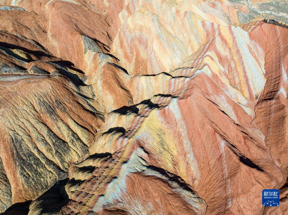 這是8月7日在張掖七彩丹霞景區拍攝的丹霞景觀(guān)(無(wú)人機照片)。