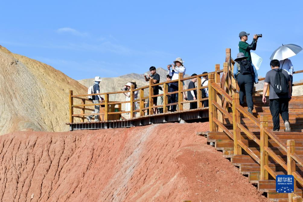 位于甘肅省張掖市境內的張掖七彩丹霞景區屬張掖國家地質(zhì)公園,是罕見(jiàn)的丹霞地貌與彩色丘陵景觀(guān)復合區。進(jìn)入8月以來(lái),七彩丹霞景區日均游客數量突破3.5萬(wàn)人次。