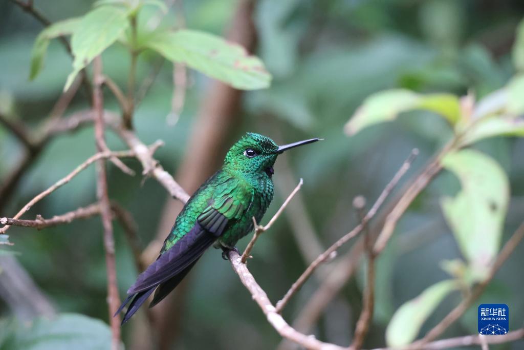 7月24日,一只綠頂輝蜂鳥(niǎo)停在哥斯達黎加蒙特韋德云霧森林生物保護區的樹(shù)枝上。
