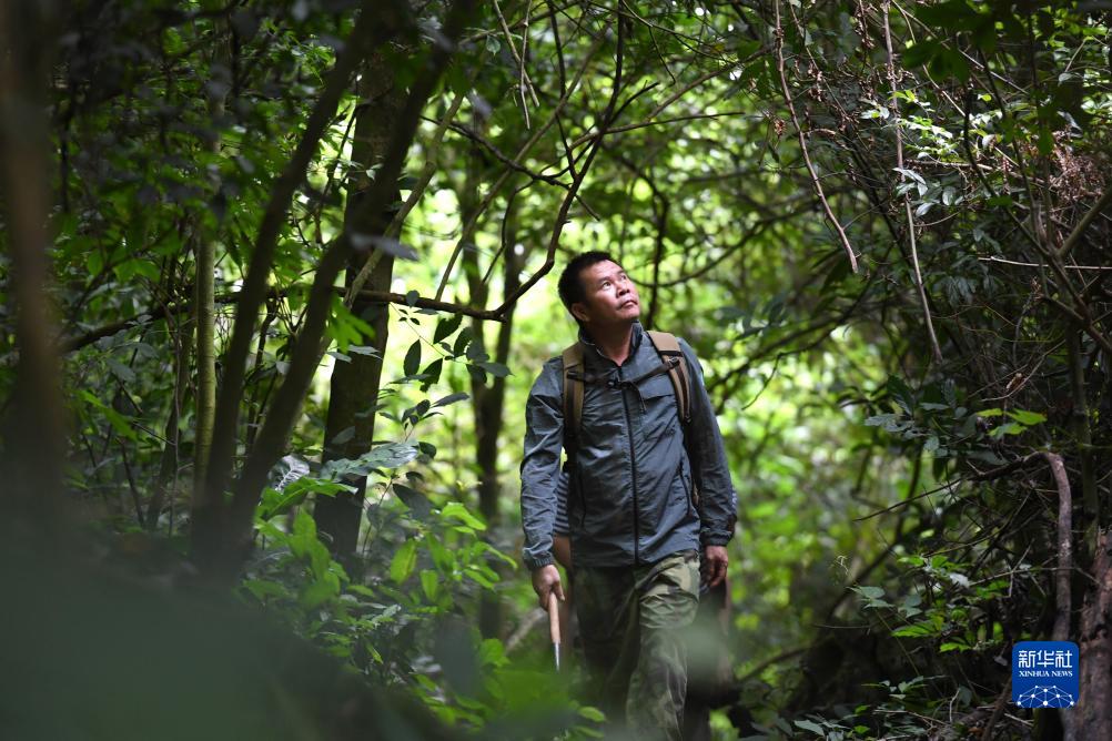 梁志章在密林中巡護猴群(8月4日攝)。