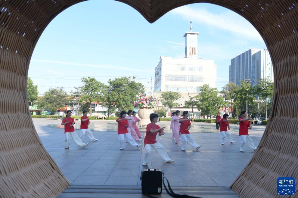 8月8日,山東省臨沂市臨沭縣文化廣場(chǎng)太極團隊在文化廣場(chǎng)展示太極拳。