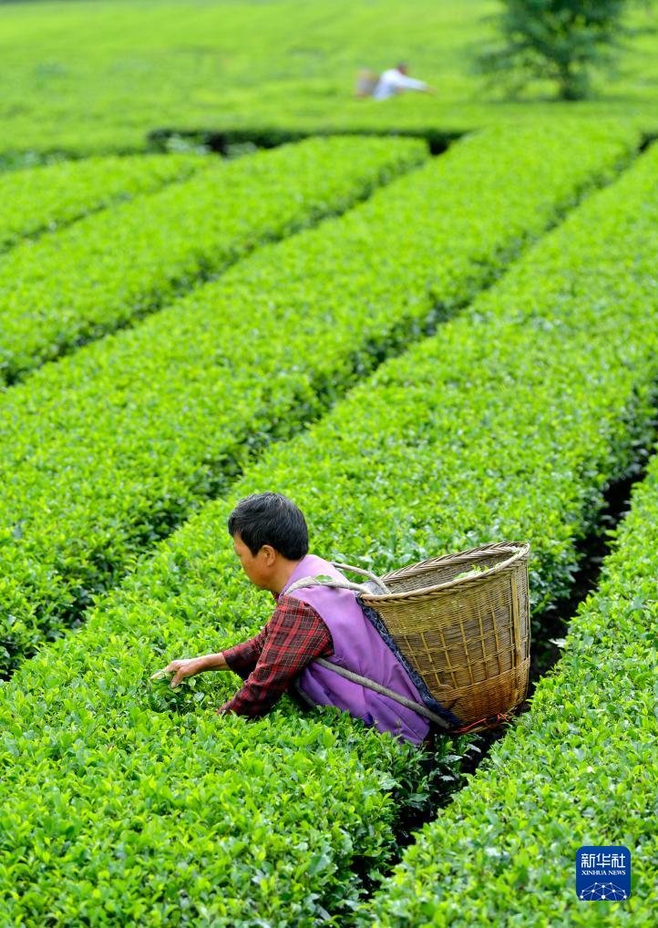 8月8日,湖北省恩施土家族苗族自治州宣恩縣椒園鎮石馬村的茶農在采摘立秋茶。