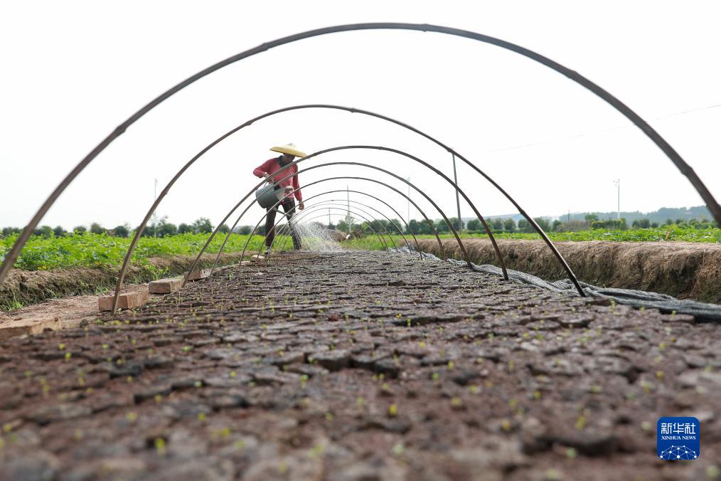 8月8日,在湖南省衡陽(yáng)市衡陽(yáng)縣西渡鎮新橋村,村民在培育蔬菜苗。