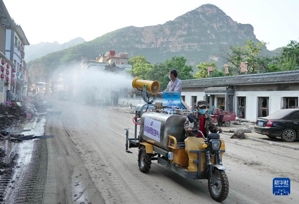 8月8日,志愿者在淶水縣三坡鎮下莊村進(jìn)行消殺作業(yè)。