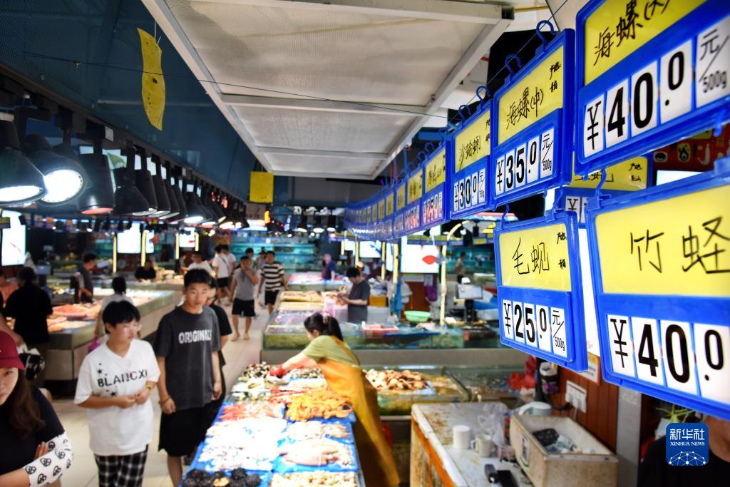 8月7日,顧客在青島市市南區浮山所市集內選購。