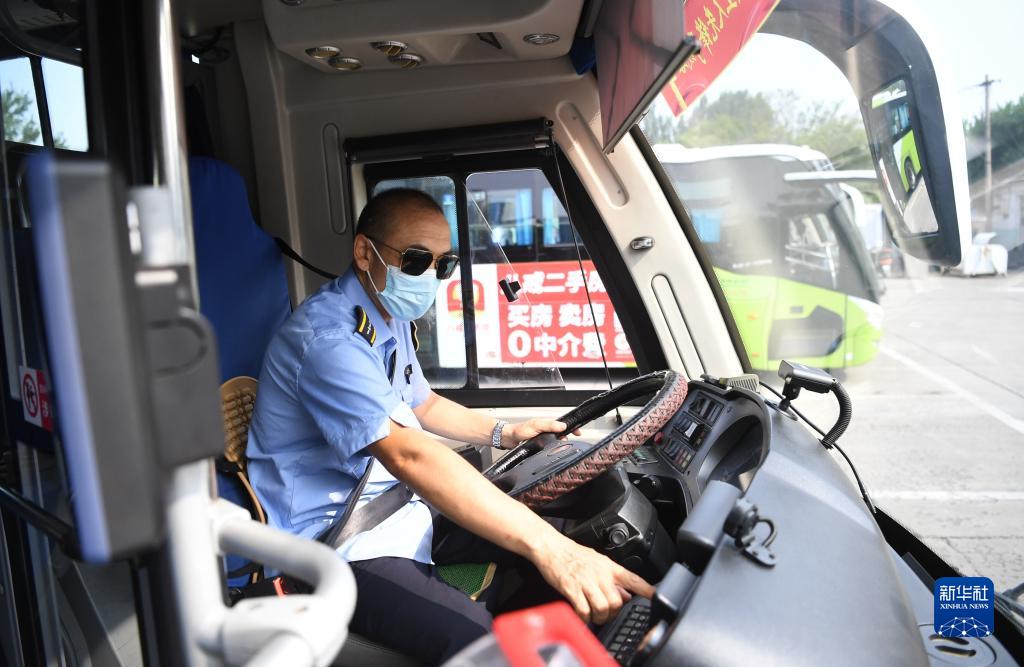 8月9日,在河北省涿州市838路公交總站,司機調試車(chē)輛準備發(fā)車(chē)。