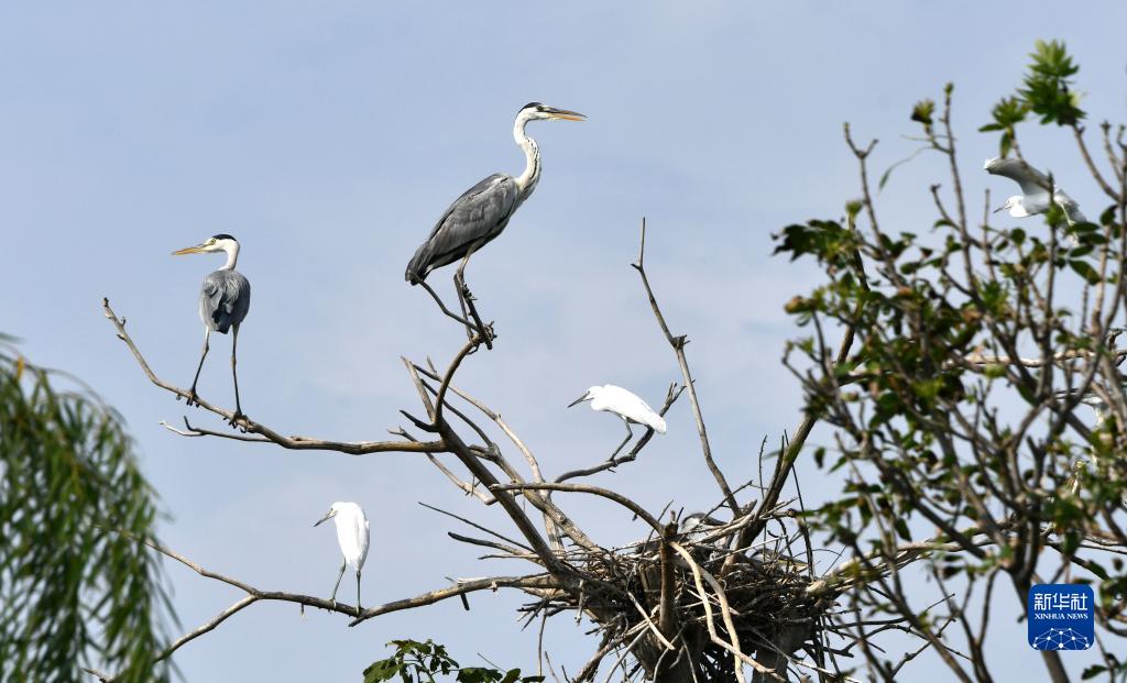 今年入夏以來(lái),大量蒼鷺、白鷺等野生鳥(niǎo)類(lèi)在山東省成武縣的文亭湖濕地內棲息。