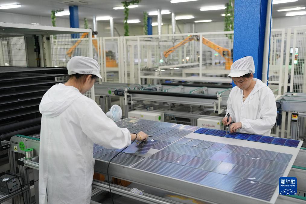 8月9日,在臺州市黃巖區省級專(zhuān)精特新“小巨人”企業(yè)浙江公元新能源科技股份有限公司,工作人員生產(chǎn)太陽(yáng)能電池組。
