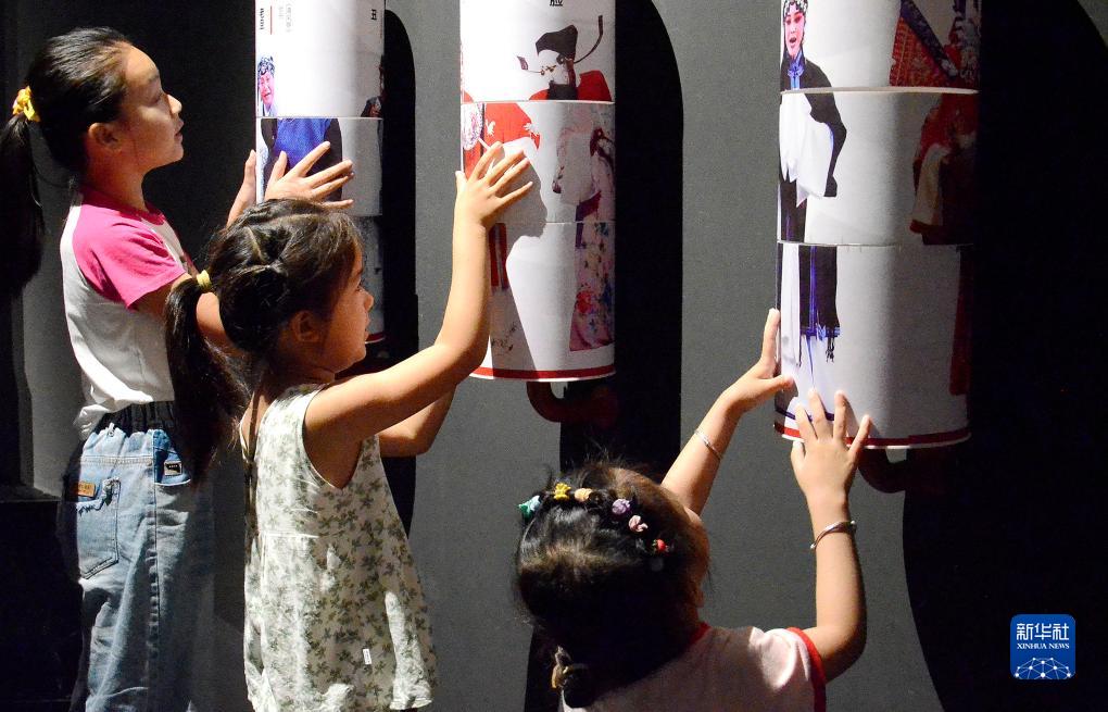 小朋友在中國秦腔藝術(shù)博物館里感受游戲互動(dòng)裝置(8月8日攝)。