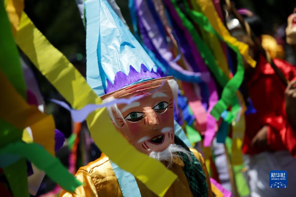 8月9日,在墨西哥首都墨西哥城,演員身著(zhù)傳統服飾參加世界土著(zhù)人民國際日慶?;顒?dòng)。