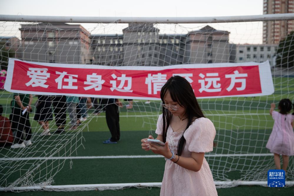 8月9日,在五常市時(shí)代中學(xué)集中安置點(diǎn),一位女士與朋友通過(guò)手機聯(lián)系。