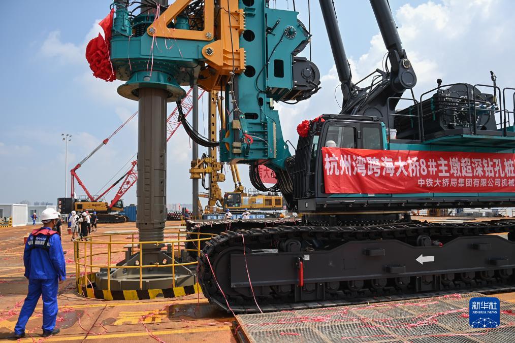 新華全媒+丨杭州灣跨海鐵路橋施工取得突破性進(jìn)展