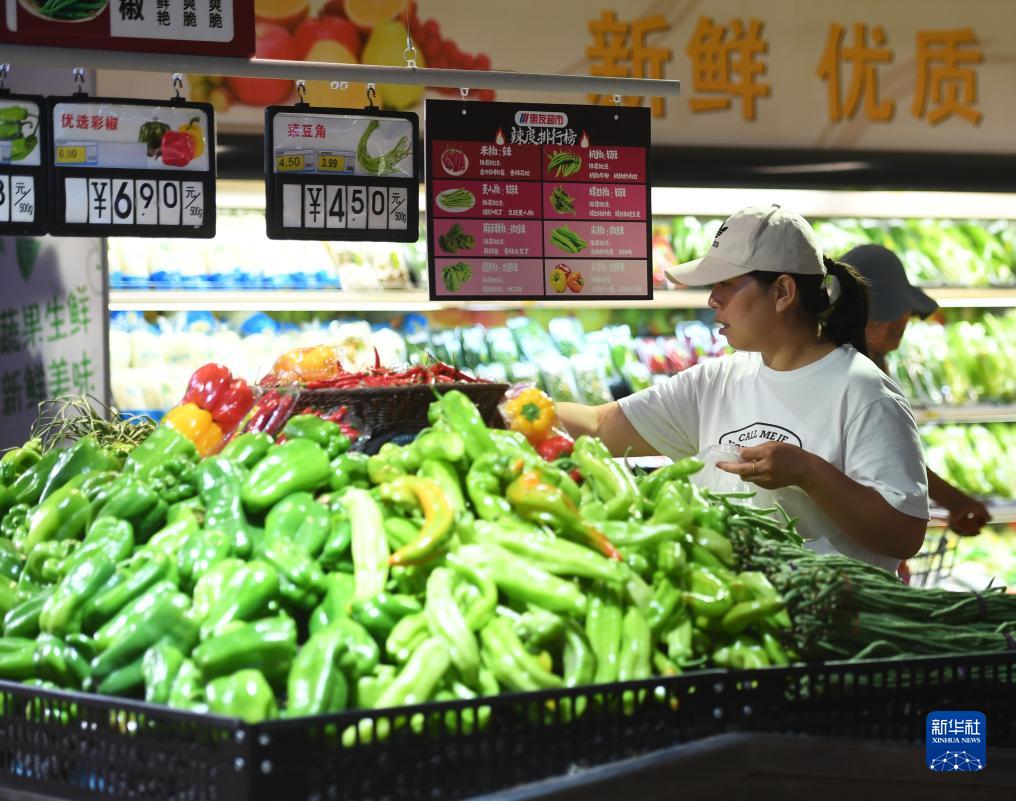 8月10日,市民在涿州市惠友超市鉆石廣場(chǎng)店選購蔬菜。