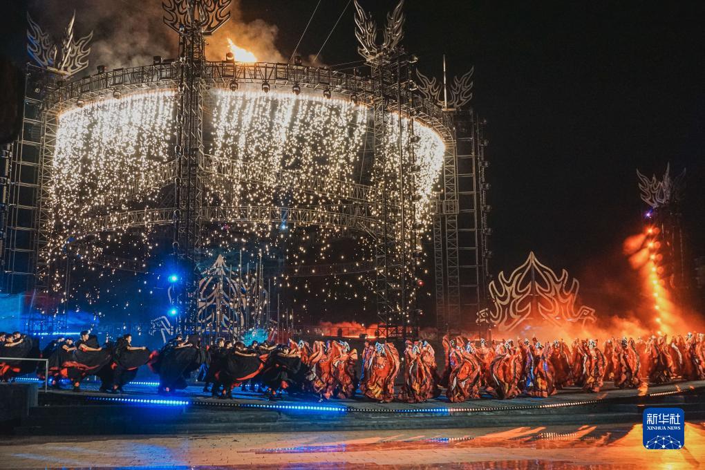 8月10日拍攝的第八屆涼山彝族火把節開(kāi)幕式活動(dòng)現場(chǎng)。