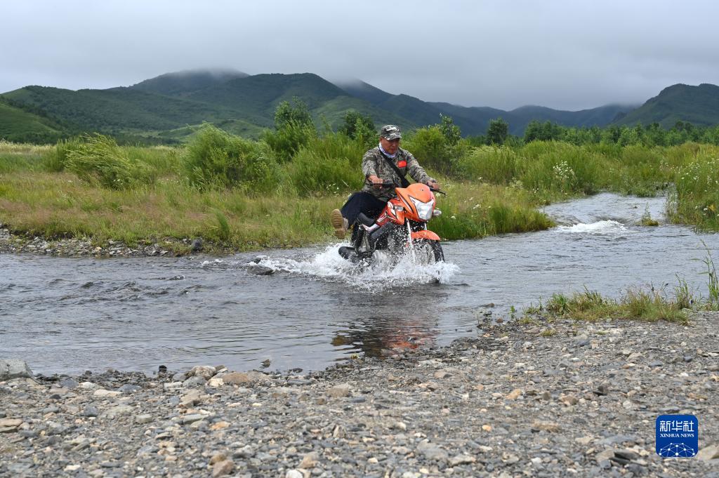 8月4日,白巴嘎那騎著(zhù)摩托在內蒙古扎魯特旗罕山國家級自然保護區內巡護。