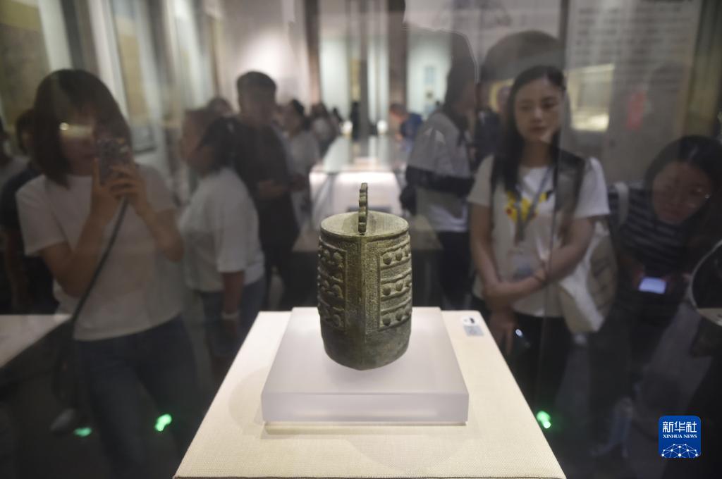8月9日,觀(guān)眾在河南省開(kāi)封市博物館里參觀(guān)“大晟夷則”銅編鐘。