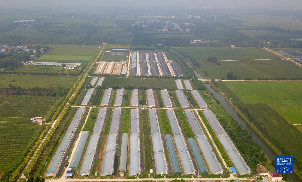 這是8月11日在山東省菏澤市定陶區杜堂鎮拍攝的一處用于蔬菜育苗的自動(dòng)控溫大棚種植基地(無(wú)人機照片)。