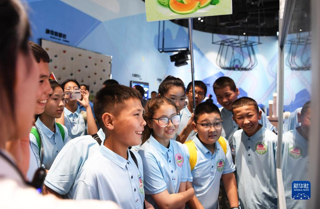 8月10日,夏令營(yíng)學(xué)生在河南省科技館新館參觀(guān)體驗。