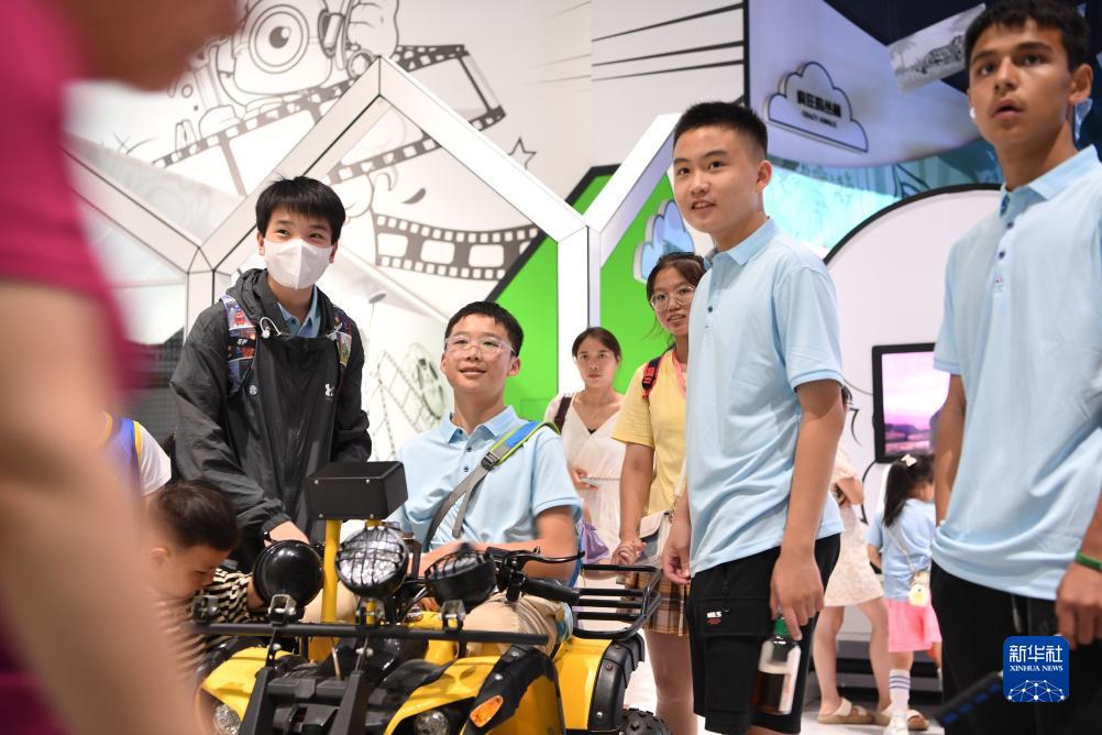 8月10日,夏令營(yíng)學(xué)生在河南省科技館新館參觀(guān)體驗。