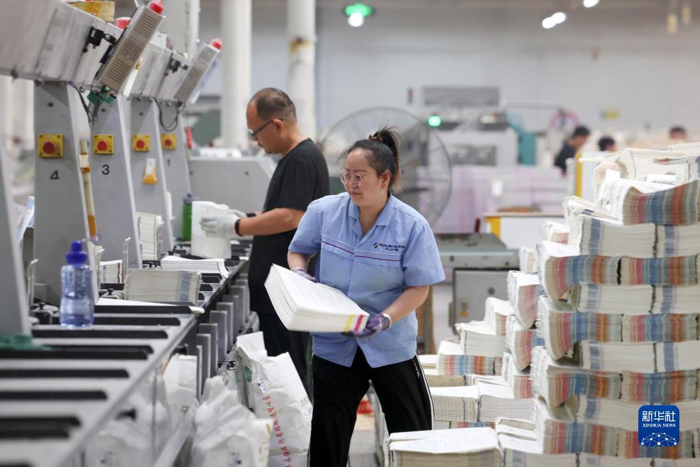 8月11日,在位于石家莊的河北新華第二印刷有限責任公司,工人在進(jìn)行教材裝訂工作。