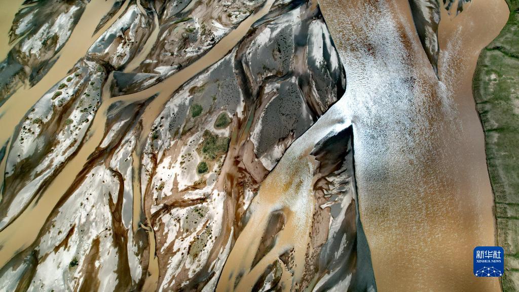 在沱沱河與當曲匯合處的囊極巴隴拍攝的辮狀河道局部(7月26日攝,無(wú)人機照片)。