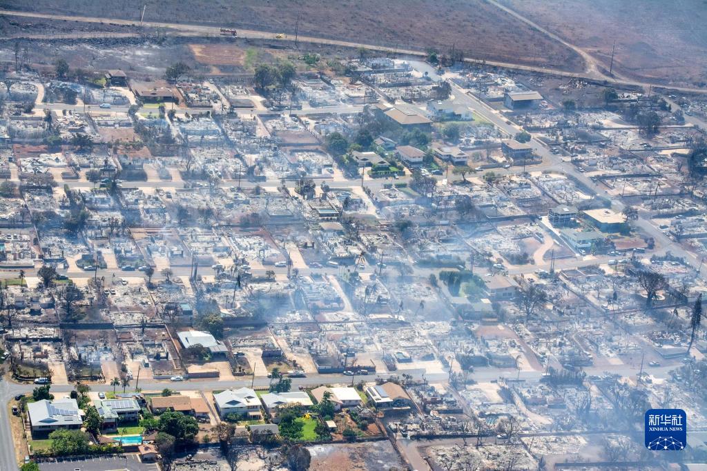 美國夏威夷州毛伊縣8月10日公布的照片顯示野火造成嚴重破壞。新華社發(fā)