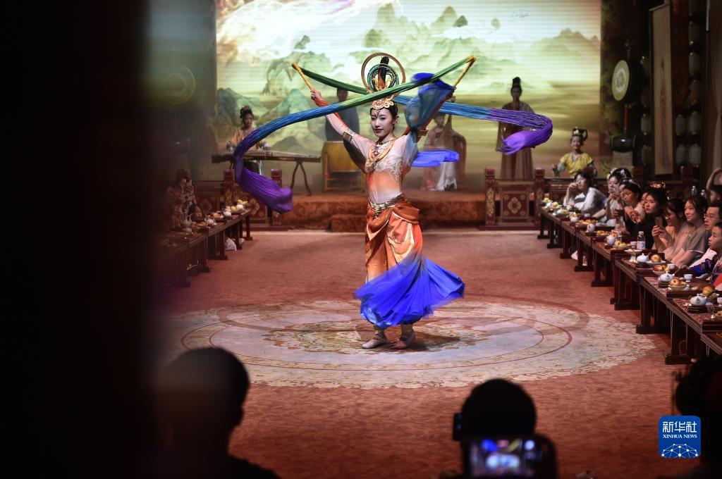 8月11日晚,游人在洛陽(yáng)應天門(mén)遺址博物館內觀(guān)賞演出。