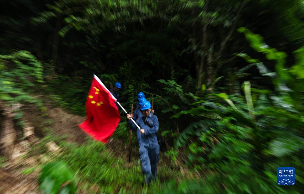 8月10日,“國旗巡線(xiàn)班”在山路上行走。新華社記者 費茂華 攝
