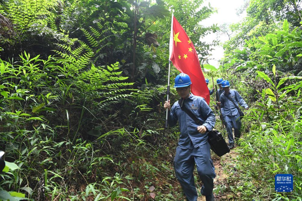 “國旗巡線(xiàn)班”在巡線(xiàn)路上(8月10日攝)。新華社記者 周華 攝