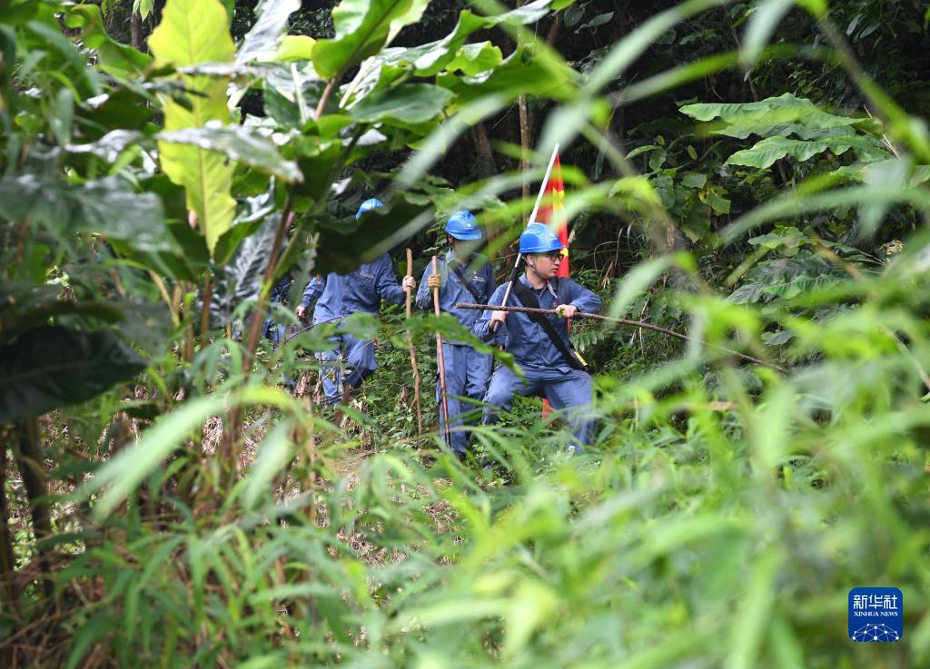 “國旗巡線(xiàn)班”在巡線(xiàn)路上(8月10日攝)。新華社記者 周華 攝