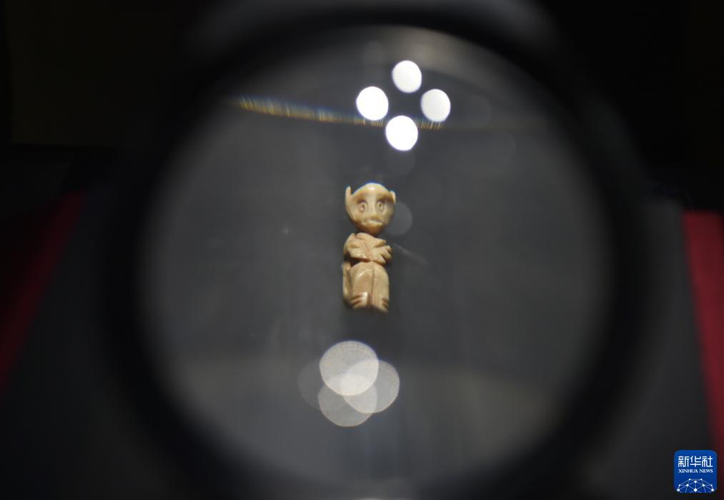 這是8月12日在位于河南省洛陽(yáng)市偃師區的二里頭夏都遺址博物館拍攝的骨猴。