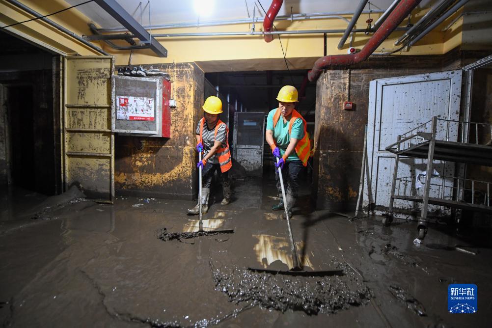 8月12日,在北京市門(mén)頭溝區醫院,因水災影響無(wú)法從事原本工作的受災群眾組成清淤隊伍,清理醫院地下室的淤泥和垃圾。新華社記者 鞠煥宗 攝