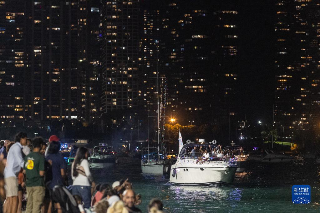 這是8月12日在芝加哥拍攝的“威尼斯游船秀”現場(chǎng)。