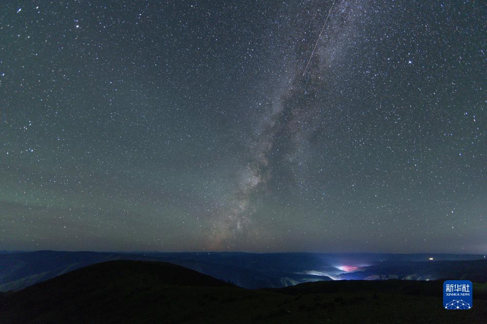 在四川省紅原縣安曲鎮,英仙座流星雨劃過(guò)夜空(8月13日攝)。
