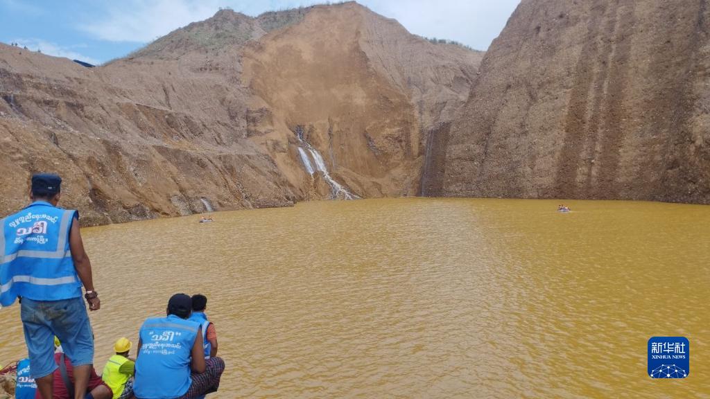 這是8月14日在緬甸克欽邦帕甘鎮拍攝的發(fā)生坍塌的玉石礦區。