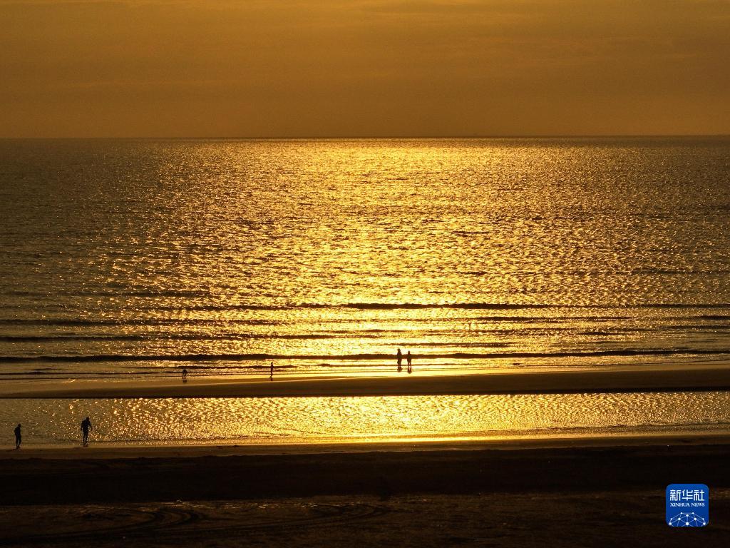 江蘇省啟東市黃金海灘景區日出景色(2023年7月25日攝,無(wú)人機照片)。