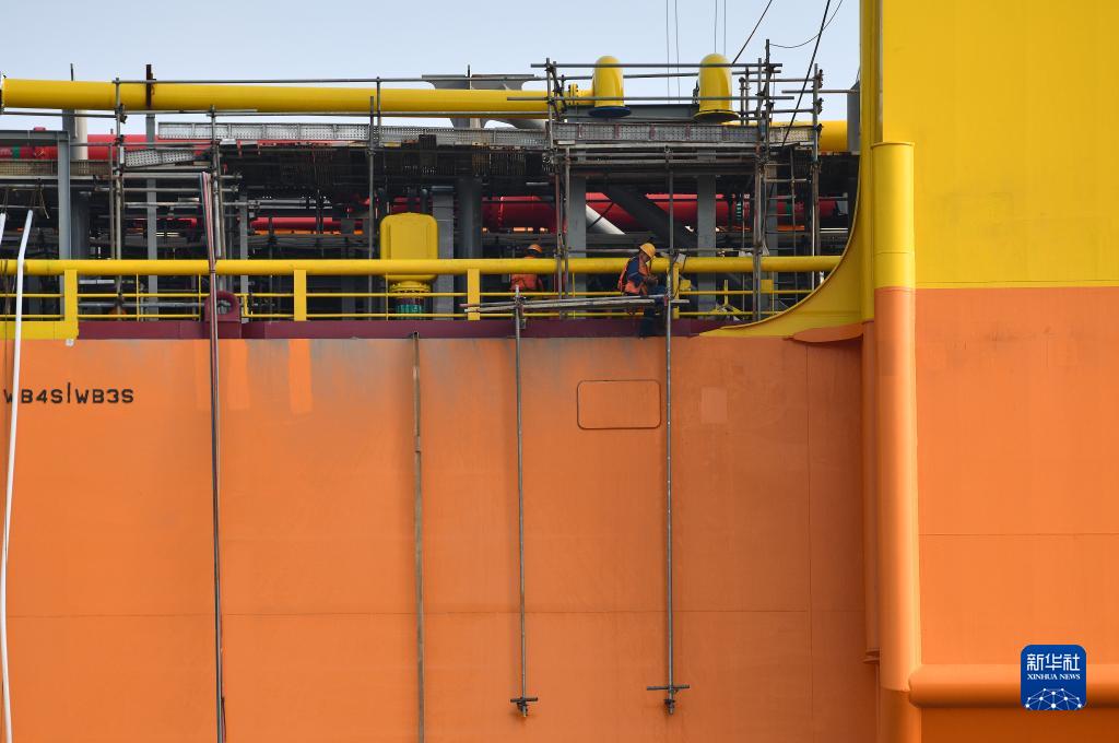 江蘇省啟東市啟東海工船舶工業(yè)園的工人在施工(2023年7月23日攝)。