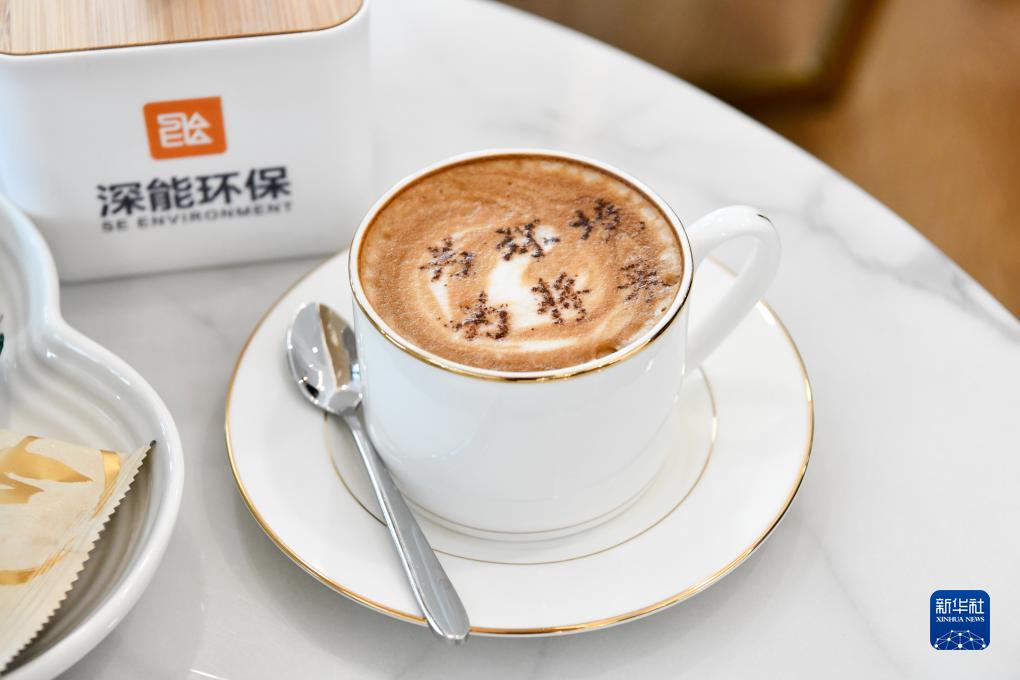 這是深圳龍崗能源生態(tài)園內的特色咖啡,上面寫(xiě)著(zhù)“為環(huán)境、為將來(lái)”(8月8日攝)。
