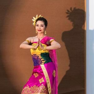8月15日,參加第11屆中國·南亞?wèn)|南亞藝術(shù)周開(kāi)幕式的舞蹈藝術(shù)家翟婭琴在表演印尼舞蹈《班納舞》。